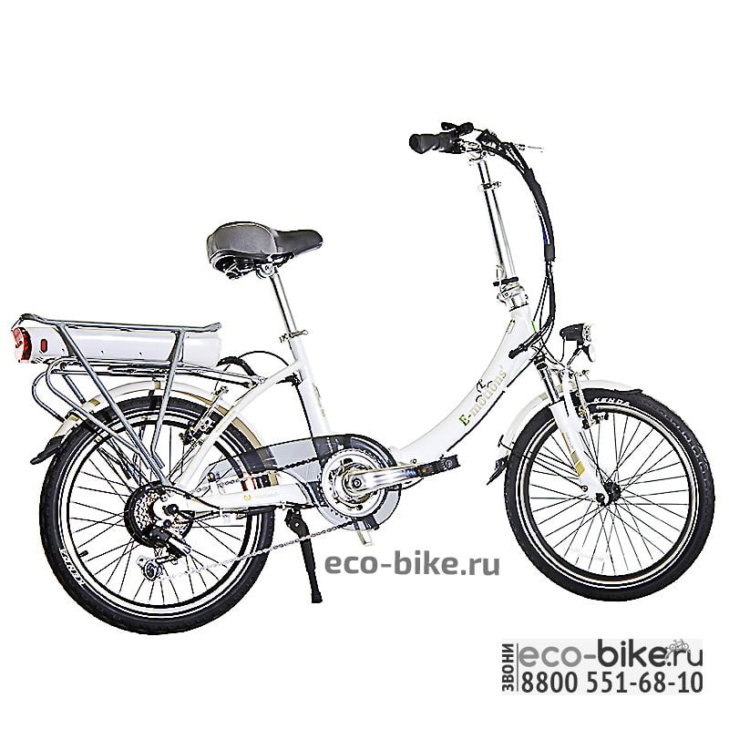 Имеется задний привод. Колеса большого размера (20 дюймов) имеют двойные обода. Протектор приспособлен для поездок по асфальту, земле, брусчатке. Складная рама из алюминия имеет «женскую» форму, что упрощает посадку. Электровелосипед легко перевезет двоих при общем весе до 120 кг. Для удобства складными являются не только рама, но и сидение, руль, педали. Перевозить модель достаточно удобно, так как ее вес не превышает 20 кг.